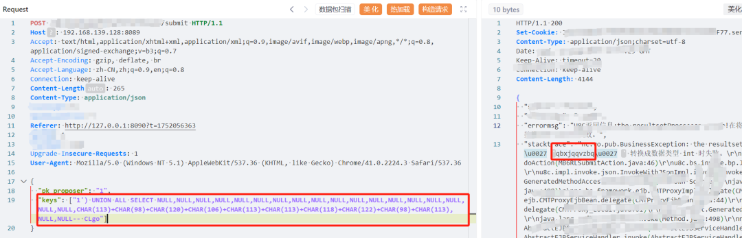 用友U8cloudsubmit存在SQL注入漏洞01漏洞介绍用友U8cloud的submit接口存在SQL注入漏洞,未经身份验证的攻击者可以通过该漏洞获取数据库敏感信息。攻击者可在无需认证的情况下,通过构造恶意请求参数注入恶意SQL语句,导致数据库信息泄露、数据篡改甚至系统权限提升,影响系统数据安全和完整性。