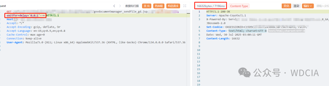万户OAgovdocumentmanager_sendfile_gd存在SQL注入漏洞01漏洞介绍万户OAgovdocumentmanager_sendfile_gd存在SQL注入漏洞 02影响版本万户ezOFFICE协同管理平台 03测绘语法Fofa测绘语句:body=/defaultroot/04POC...