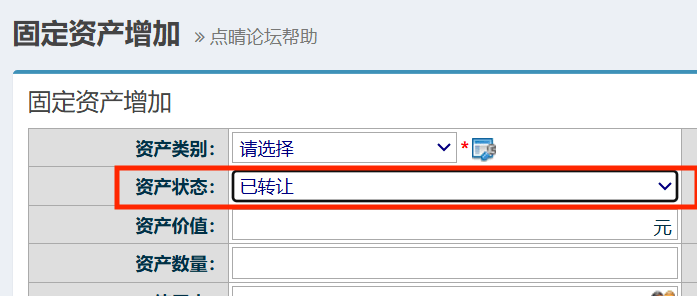 请问固定资产管理模块资产状态是否可以自定义内容?​ 不能,是固定写死的:使用中、闲置、已坏、已报废、已出售、已转让。