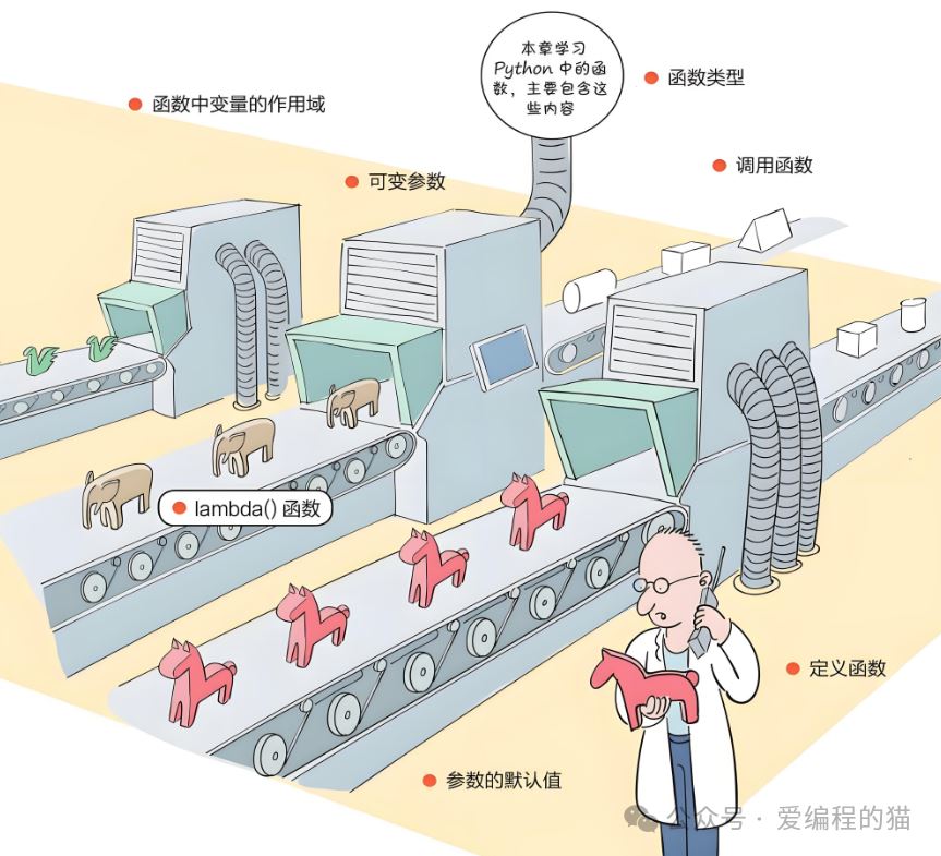 导读简要介绍:本文改编知名作家-关东升,一个在IT领域摸爬滚打20多年的老程序员、软件架构师、高级培训讲师、IT作家。​8.1定义函数自定义函数的语法格式如下:以英文半角冒号结尾例代码如下:8.2调用函数在定义好函数后,就可以调用函数了,很简单!8.2.1使用位置参数调用函数在调用函数时传递的实参与定义函数时的形参顺序...