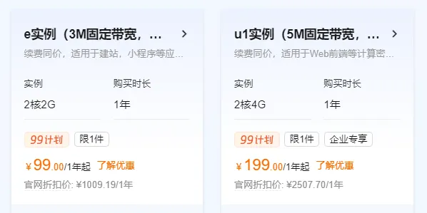 一、阿里云——新用户首选,续费同价!推荐套餐:轻量应用服务器2核2G+200M峰值带宽首年仅68元(秒杀价低至38元)适合个人建站、测试环境爆款特惠2核2G3M+40GSSD(2年)总价198元→平均99元/年性价比之王,稳定可靠企业优选2核4G5M+80GSSD首年199元,续费同价199元适合中小企业、高并发场景,...