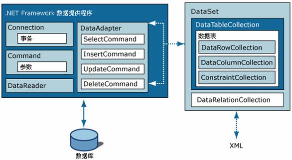 • DataSet一次性从数据源获取数据到本地,并在本地建立一个微型数据库(包含表、行、列、规则、表之间的关系等),期间可以断开与服务器的连接,使用SqlDataAdapter对象操作“本地微型数据库”,结束后通过SqlDataAdapter一次性更新到远程数据库服务器。这种方式使用起来更方,便简单。但性能较第一种稍微差一点。(在一般的情况下两者的性能可以忽略不计。)