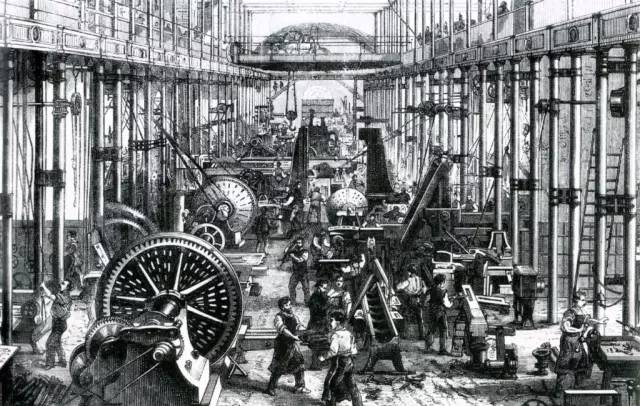 18世纪之前,人不知工厂为何物。商品都是手工、家庭、作坊制造。工业革命后出现工厂,发展出高度集中的规模生产。标准化部件的制造制度(源于英国,在美国得到广泛应用)被亨利?福特(Henry Ford,1863~1947)在汽车工业中发展成生产流水线,大大提高了生产力。