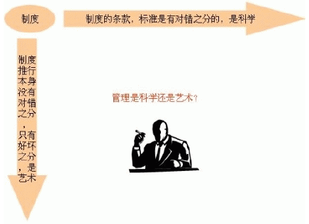 我们拿制度来分析,如上图所示,制度本身有对错之分,但制度推行的过程却只有好坏之分,所以,制度的制订是科学,制度的推行是艺术。