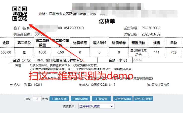 点旺点晴模切ERP-扫描单据或标签的二维码,识别的内容为什么是个demo?