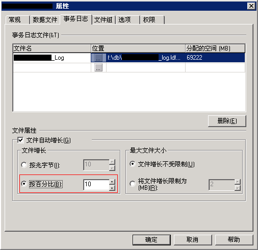 SQL事务日志自动增长方式设置不当导致站点出现Service Unavailable