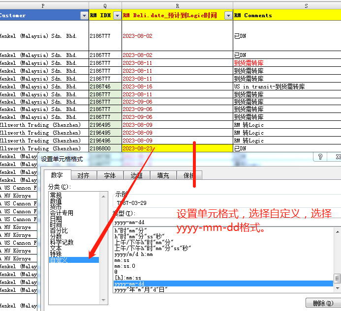 选择自定义分类,选择 '‘yyyy-mm-dd’格式类型。