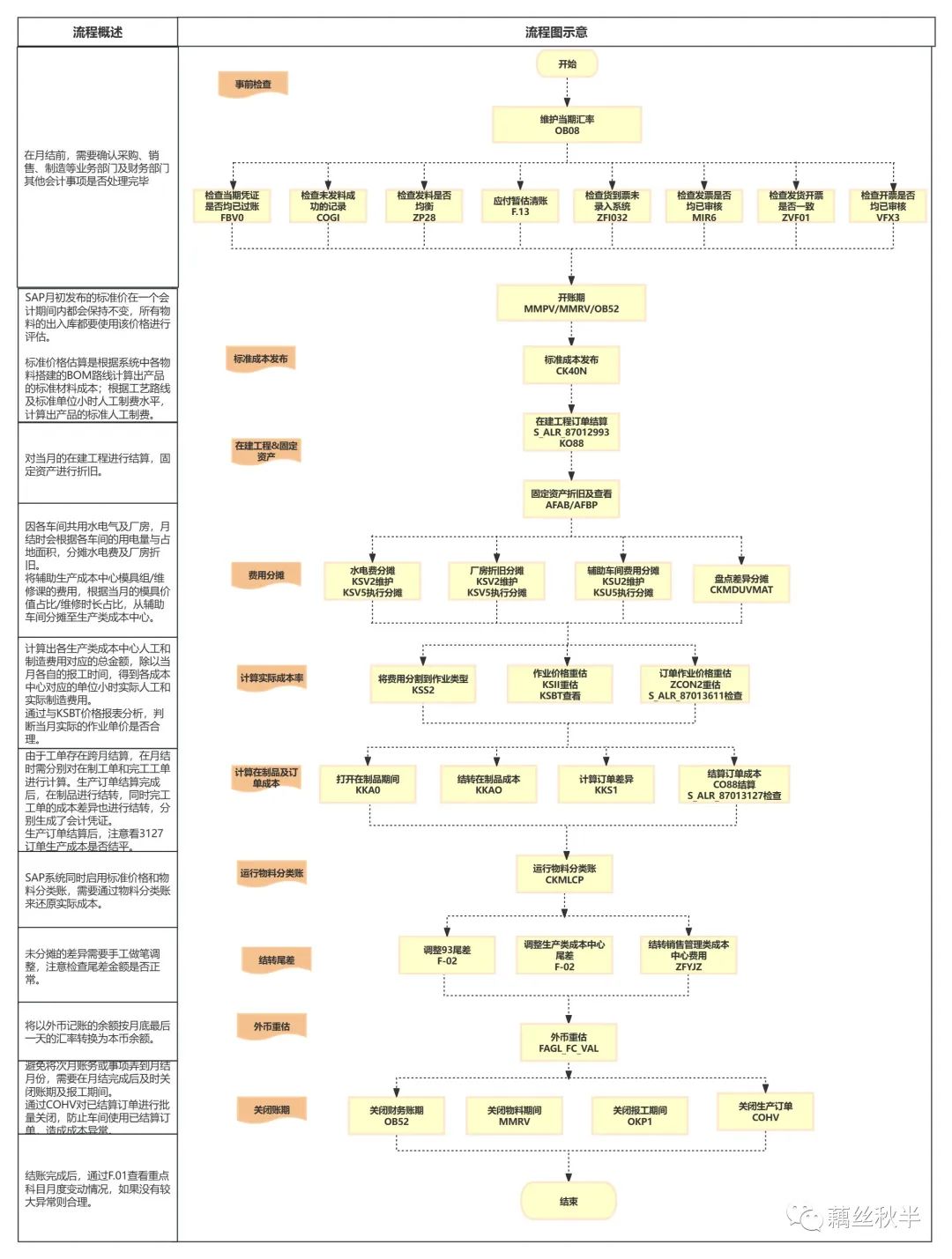 昨日更新了SAP成本月结前的准备工作,今天将介绍结账流程。使用SAP的企业一般是在次月初对上月成本进行结算,通常需要在两个工作日内处理完毕。