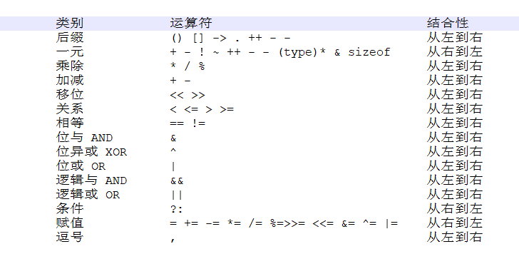 运算符优先级