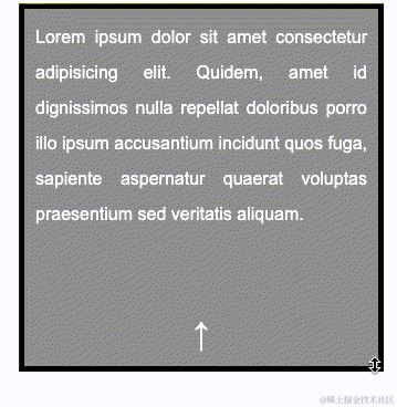 我们可以清楚的看到,当我们往下拖动容器变高的时候,箭头元素是逐渐慢慢向上出现,而不是突然在某一个高度下,直接出现,所以在实际使用中,会出现这种 ICON 只出现了一半的尴尬场景: