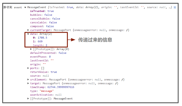 总而言之,shared-worker.js 脚本创建了一个共享 Worker 实例,它可以接收来自不同页面的连接请求,并将接收到的消息发送给其他连接的页面。通过使用 SharedWorker API,实现跨 TAB 页面之间的通信和数据共享。 同理,我们来看看基于 Worker 的数据传输效果,同样是简化 DEMO,当 Resize 窗口时,向另外一个窗口发送当前窗口下 可以看到,如果我们同时打开两个一个的页面,当触发右边页面的 Resize,左边的页面会利用 而一个完整的 Event 信息如下: 可以看到,在 SharedWorker 方式中,传输数据与 Broadcast Channel 是一样的,都是利用