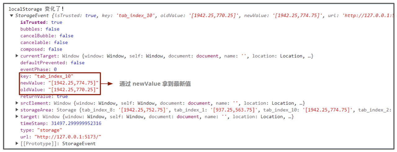 window.addEventListener('storage', (event) => { console.log('localStorage 变化了!', event); console.log('键名:', event.key); console.log('变化前的值:', event.oldValue); console.log('变化后的值:', event.newValue); handleMessage(event.newValue); }); } function getCurPos() { const barHeight = window.outerHeight - window.innerHeight; const element = document.getElementById('j-main'); const rect = element.getBoundingClientRect(); // 获取元素相对于屏幕左上角的 X 和 Y 坐标 const x = rect.left + window.screenX; // 元素左边缘相对于屏幕左边缘的距离 const y = rect.top + window.screenY + barHeight;// 元素顶部边缘相对于屏幕顶部边缘的距离 return [x, y]; }