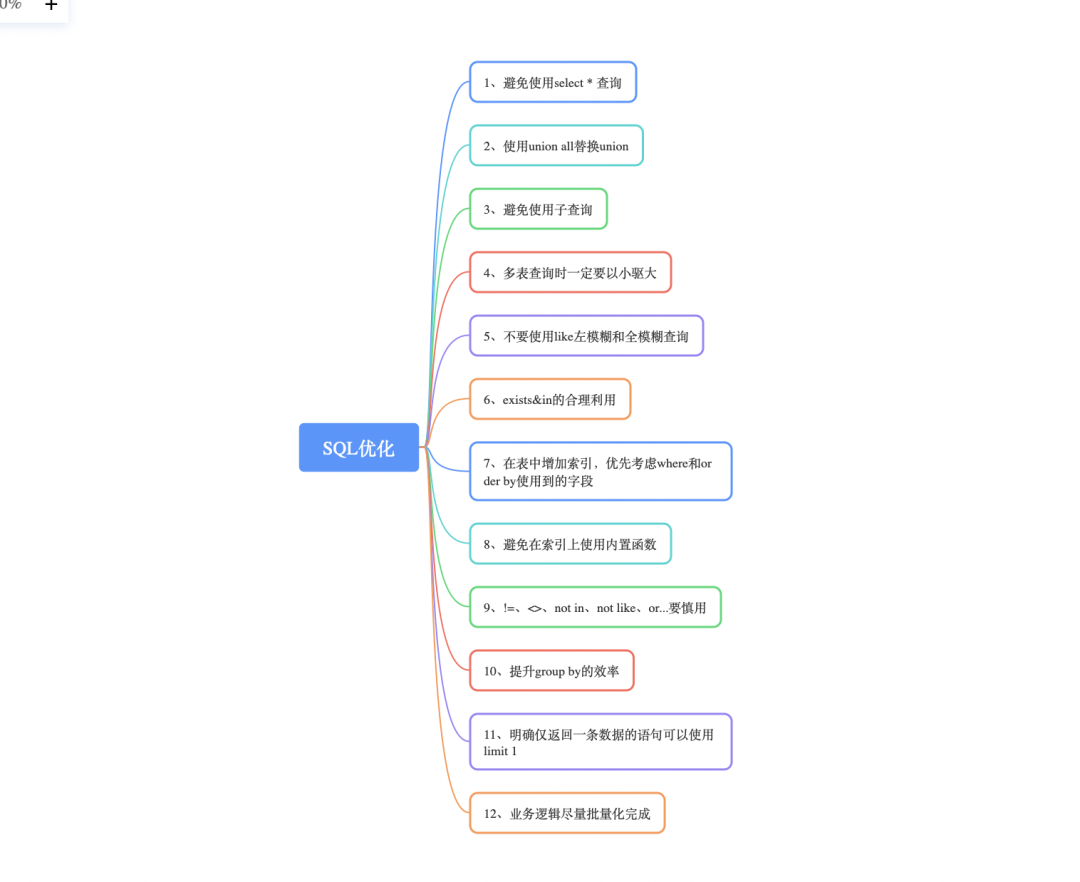 sql优化是一个大家都比较关注的热门话题,无论你在面试,还是工作中,都很有可能会遇到。 那么,如何优化Sql呢?本章节分享了12个小技巧,我们一起来学习下。 1、避免使用select * 查询很多时候,为了使用起来方便简单,我们喜欢直接使用select * 来查询数据。 反例: