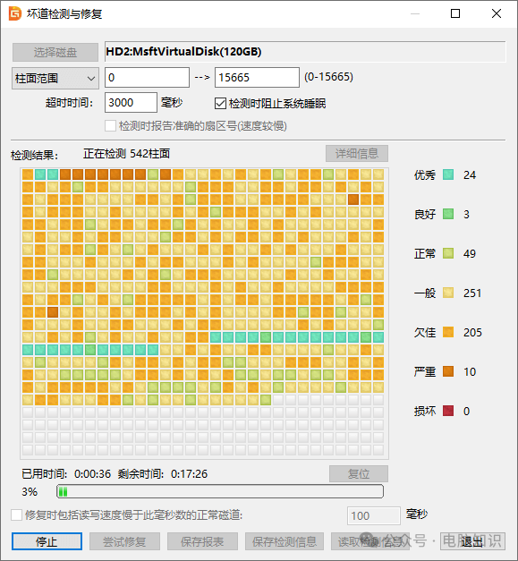 磁盘有坏道了怎么办?磁盘上的重要数据还能恢复吗?发现磁盘有坏道了,可按照本文提供的方法恢复数据。重要提示:若磁盘有坏道,恢复数据的时候,应该优先复制最重要的数据。因为有坏道的磁盘在复制数据的过程中存在继续恶化的风险。对于这种磁盘,在复制数据过程中尽量不要离开。同时,要注意监听磁盘是否有异常响声,如发生异常响声要立即关机断电。一、在DiskGenius软件中可直接看到需要恢复的数据磁盘出现坏道并丢失了数据,但是打开DiskGenius软件后,可以在软件中直接看到该磁盘上的数据并且目录结构正常。一、对于非NTFS分区,如,FAT32分区,exFAT分区,EXT4分区,可按照上述原则直接将文件复制到其他磁盘。在复制文件期间,软件可能会弹出错误信息,用户须酌情选择或是咨询在线客服。二、对于NTFS分区,推荐先使用【智能加载当前分区】功能,对分区进行加载,然后再复制数据。右击需要恢复数据的分区 > 选择"智能加载当前分区"菜单项,如下图所示。二、在DiskGenius软件中无法直接看到需要恢复的数据(磁盘无明显异常响声)磁盘出现坏道并丢失了数据,打开DiskGenius后,无法直接看到磁盘上的数据,并且磁盘没有明显异常响声。具体方案要看实际磁盘坏道分布情况,如条件允许,尽量用【扇区复制】功能先进行扇区镜像提取,然后对其镜像进行扫描恢复;对于零星坏道情况,也可以尝试对源盘直接进行扫描,搜索丢失的数据。1. 对于集中坏道的情况,推荐使用【扇区复制】功能。操作期间,应优先提取状态优良的扇区部分,然后对其镜像进行扫描并恢复数据;至于,如何挑选优良的扇区部分,可参考【坏道检测与修复】功能中所生成的检测报告。2. 规律坏道。如果检测坏道后发现磁盘坏道是有规律的出现,那么很有可能是磁头出现故障。这种情况,推荐开盘恢复数据,相关细节请咨询在线客服。想要知道磁盘是否有坏道,首先,可以使用DiskGenius的【查看磁盘S.M.A.R.T信息】功能大概辨别一下。如果磁盘在运行中有侦测到坏道,就会记录到S.M.A.R.T信息中。其次,若关心具体坏道分布情况可使用DiskGenius提供的【坏道检测与修复】功能,做详细的坏道检测。提醒:如果磁盘上有重要数据,坏道检测完毕后,不要尝试修复坏道。修复磁盘坏道并不会将数据恢复,反而会破坏位于坏道区域的数据。选择需要检测坏道的磁盘,然后点击"磁盘" > "坏道检测与修复"菜单项。点击"开始检测"按钮,软件立即开始检测坏道。注意,在检测坏道期间不要对磁盘做其他操作。
