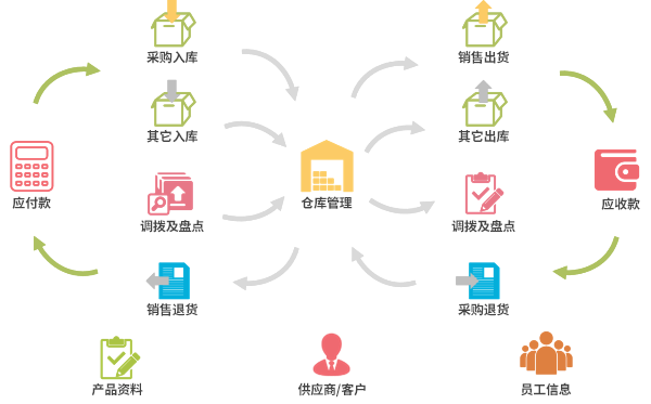 采购管理由采购申请单维护、采购订单审核、采购订单明细查询等功能模块组成;此模块包括供应商维护,供应商报价查询,自动生成供应商对账单,轻松管理采购信息。以销售订单管理为轴心,销售订单明细查询,销售订单状态跟踪,通过网页或手机APP随时访问进销存,让您随时随地了解销售状况。库存管理包含出入库管理、库存数量调整、库存流水账查询等模块。记录商品在仓库中的实时数量,一目了然各种商品的库存状况,低库存报警提示,让企业对商品的管理简单而自在。主要提供销售收入、采购支出,财务报表查询、物流运费、应收应付等业务处理。自动生成金额流水账,方便查询每笔资金变动。