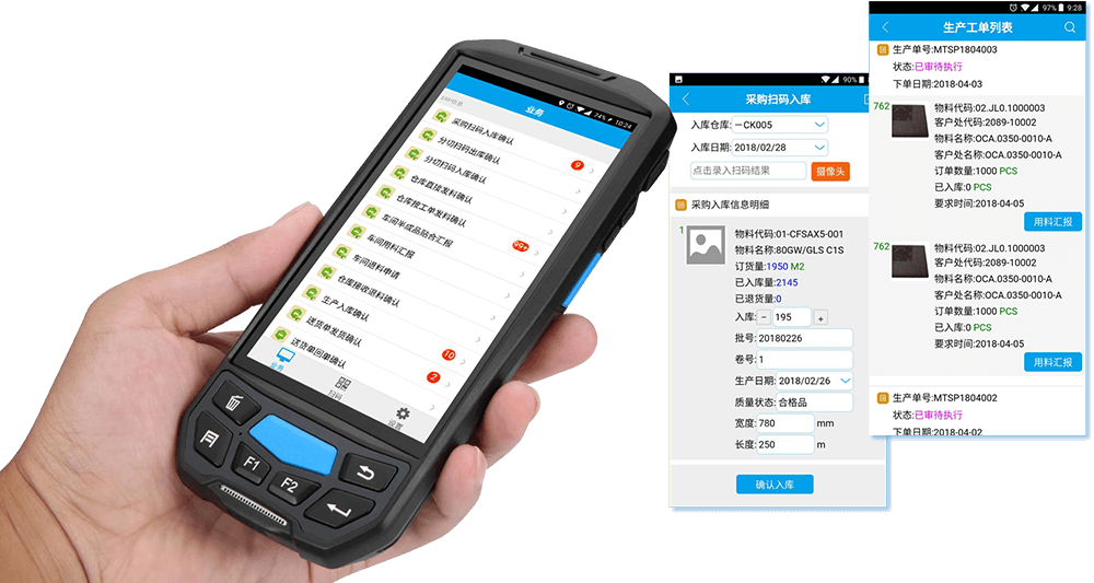 在线订单替代纸张单据,提升管理效益。每张单据都有相应的二维码标签,员工用手机/移动终端直接扫码就可以实时查看每张单据的状态和数据,提高管理效益。精细话管理仓库记录,统一管理出入库,库存数量精准清晰。从原材料入库到领料、成品入库到出库、用料用工汇报、IQC来料品检到FQC成品终检的全过程都是移动扫码追溯完成,业务流程线上化,减少人为差错。遵循入库必有码,出入必扫码两大原则,仓库/车间/品检现场无需电脑,扫码自动提示操作步骤并智能纠错,让生产管理数据实时准确。