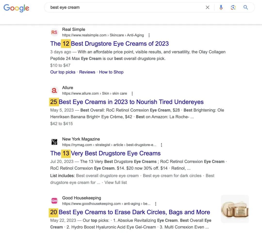 目录: 内容匹配搜索意图 创建值得点击的标题标签和元描述 改善网站的用户体验 锁定具有搜索流量潜力的主题 在三个地方使用目标关键词 使用简短和描述性的 URL 为 SEO 优化图片,以获得更多流量 添加其他相关页面的内部链接 涵盖用户想知道的一切 获取更多反向链接以建立权重 在 Core Web Vitals 中取得好分数 使用 HTTPS 确保网站安全 如果你想提高网站的 SEO 优化表现,最好从实施 SEO 最佳实操开始。 以下是 12 项基本的 SEO 优化最佳实操,可帮助你提升网站在搜索引擎中的表现。 1 内容匹配搜索意图 搜索意图是用户在谷歌搜索的根本原因。它之所以重要,是因为谷歌的主要工作是为用户的搜索提供最佳结果。 如果你的网页符合用户的搜索意图,那么你在谷歌排名的机会就会最大。因此,根据用户的搜索意图调整页面至关重要。 例如,看看 “how to make a protein shake” 的搜索结果。 ![]() 该搜索结果中没有可购买的产品。这是因为用户是来学习的,而不是来购买的。 而 “buy protein powder” 这样的搜索则恰恰相反。 人们不是在寻找蛋白奶昔配方,而是想购买一些蛋白粉。这就是为什么排名前十的结果大多是电商网站的分类页面,而不是博客文章。 ![]() 通过查看谷歌排名靠前的结果,你可以了解到搜索背后的意图,这有助于你了解如果想要获得特定页面的排名,应该创建什么样的内容。 我们来看看 “best eye cream” 这个意图不太明显的关键词,据估计,它在美国的月搜索量为 3.1 万次。 ![]() 对于眼霜零售商来说,尝试将产品页面排在这个关键词的前面似乎是完全合乎逻辑的。然而,搜索结果却说明了不同的问题: ![]() 几乎所有的搜索结果都是博客文章,而不是产品页面。 要想在该关键词上获得排名,你就应该模仿这种模式。迎合搜索意图不仅仅是创建某种类型的内容。你还需要考虑内容的格式和角度。 2 创建值得点击的标题标签和元描述 标题标签和元描述是你在谷歌搜索结果中的门面。 像下方这样: ![]() 如果用户不感兴趣,他们就不太可能点击你的搜索结果。 小提示: Google 并不总是在搜索结果中显示你定义的标题和描述。有时,它会改写标题,并从页面中选择更合适的描述进行展示。 你应该如何提高点击率(CTR)? 首先,标题标签要控制在 60 个字符以内,描述要控制在 150 个字符以内。这样就避免被 Google 截断。 其次,根据搜索意图调整标题和描述。 例如,几乎所有的 “best headphones” 结果都在标题和描述中注明了年份。 ![]() 这是因为人们需要最新的推荐列表,因为新耳机不断推出。 第三,使用有力的词语来吸引点击,但不要 “标题党”。 ![]() 3 改善网站的用户体验 用户体验(UX)侧重于网站的可用性以及访客是如何互动和体验网站的。 用户体验对搜索引擎优化非常重要,因为如果网站使用起来不愉快,用户就会离开网站。 如果用户在网站上持续这样做,就会产生很高的跳出率。 为了改善用户体验,阻止用户快速离开网站,请尝试测试以下的内容: