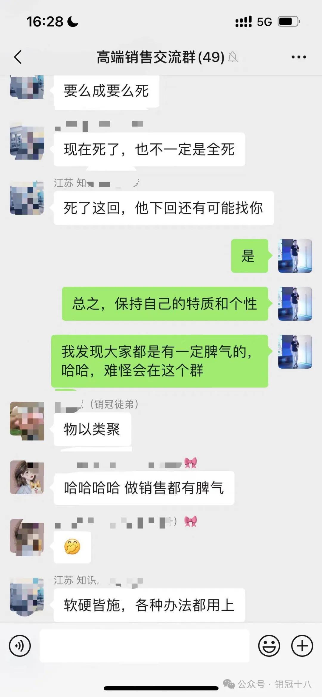 你说话越软,越得不到客户的尊重,越难拿下客户。 销冠都是有脾气的。 你的软,不仅让自己处于卑微一方,生怕说错话,只会让你,战战兢兢,如履薄冰。 如何做一个“硬气”的销售? 这种硬气不是说,你说话狠,心气高,更多的是“狼性佛心。” 狼性说的就是你做事要狠,说话要雷厉风行,要敢于要客户反应,要敢于摆明立场,哪怕对方是拒绝,也不要患得患失的。 佛心呢,就是在强大的外表上,不管看起来有多强硬,始终要为客户着想,始终要保持善意,把客户的事当成自己的事。 当然也不是所有的地方都需要硬气,分享几个场景 1、敢于要客户反应/态度 你发了一堆消息客户不回,什么都谈好了,客户突然像消失了一样,客户有担忧但是无论你怎么问都说。 面对这种情况,90%的销售,都会开始畏惧给客户再发消息再打电话了。 这种客户,我要告诉你,反而成交率能到90%,你是不是会被吓到? 答案很简单,死马当活马医,抱着你已经失去的心态,给这个客户发一段心里话过去就好。