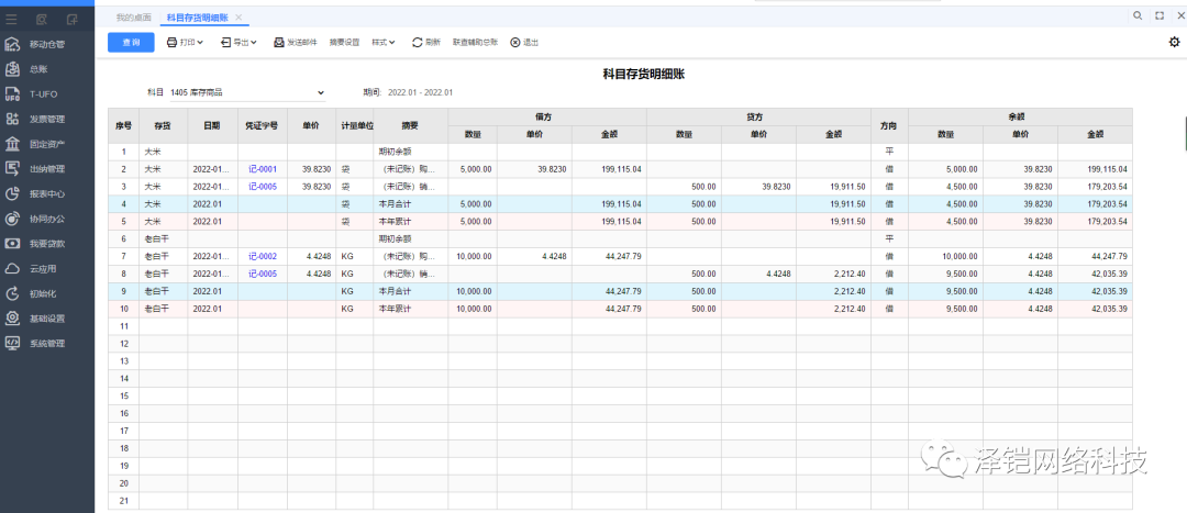 对外:税务监管越来越严,规范做账才是最安全的,在总账模块有完整的库存台账。