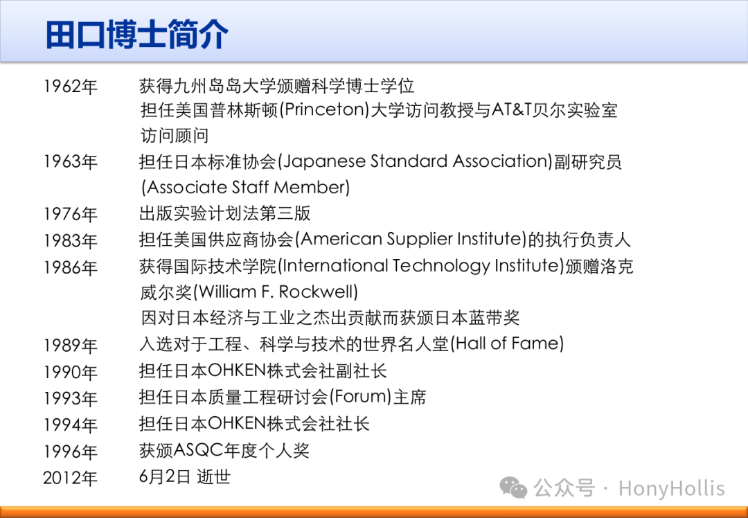 在当今竞争激烈的市场环境中,企业不断追求卓越的质量和高效的生产。田口 DOE 法(静态参数)作为一种强大的质量管理工具,为企业提供了实现这一目标的有效途径。 一、田口 DOE 法是由质量管理大师田口博士创立,其在国际上久负盛名,曾在日本质量管理学院任职,为众多知名企业提供咨询顾问服务。他开发的田口方法,是一套源于全面质量管制与保证观点的方法,用于缩短制程改善与产品开发周期。 二、田口 DOE 法通过对系统理想机能的思考、误差因素的应用以及 SN 比的衡量,能够在产品研发设计和制程改善中发挥重要作用。它能帮助企业找出设计或制程的最佳条件组合,使变异最小化,从而提升产品质量。 三、该方法的核心特色包括:一是着重 “系统理想机能” 思考,明确系统应达到的最佳表现;二是充分考虑 “误差因素”,如外部杂音、内部杂音和产品间的变异,通过控制、补偿或减小杂音冲击来应对;三是以 SN 比衡量质量,追求信号与噪声比的最大化,确保系统输出的稳定性和可靠性。 四、田口 DOE 法还涉及一系列关键要素,如控制因素、信号因素、误差因素等,以及多种质量类型和系统输出种类。通过合理选择因素和配置实验,如运用直交表设计,能够高效地获取数据并进行分析。 五、在实际应用中,以硅晶圆电镀制程改良为例,田口 DOE 法能够显著提升产品质量。通过明确系统、选取因素、配置实验、收集分析数据等步骤,确定最适条件,从而大幅降低变异,提高生产效率和产品质量。这一方法为企业在质量管理和优化方面提供了宝贵的思路和方法,助力企业在市场竞争中脱颖而出。 以下便是关于田口DOE法的相关资料: