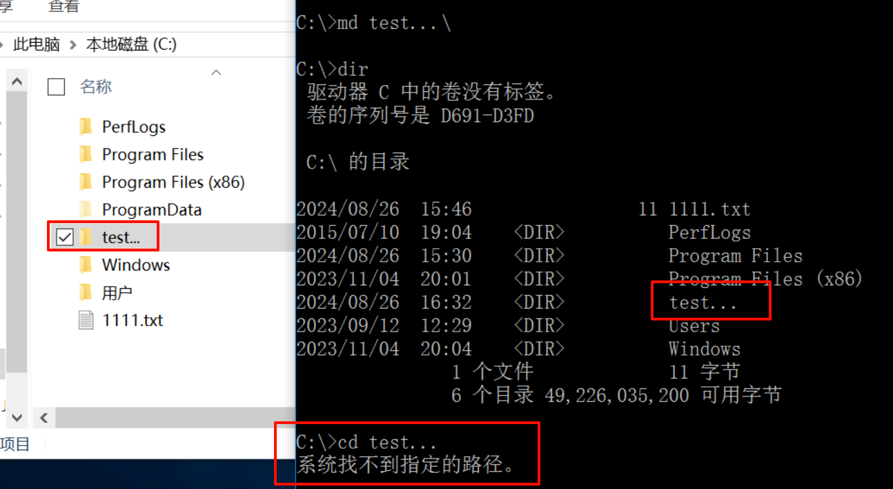 命令执行后,我们并看不到 test 目录,但是他是存在的,也是可以进入的