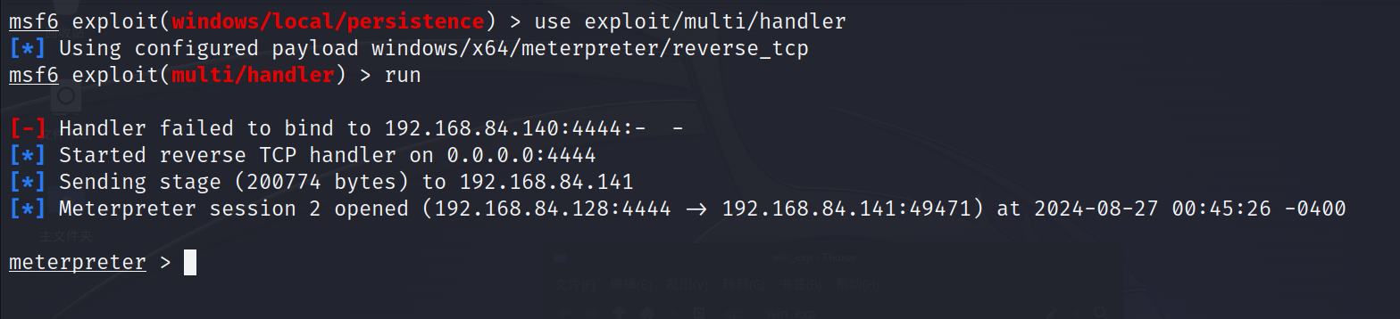 | msf6 exploit(multi/handler) > use exploit/windows/local/persistence |