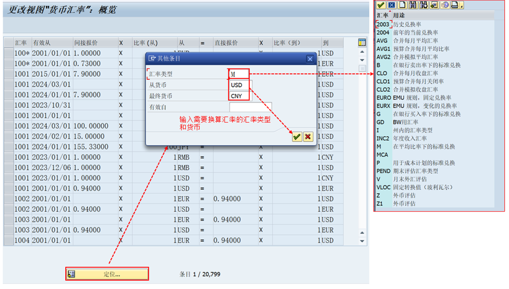 在讲解维护汇率操作之前,需要先了解下汇率类型的概念,SAP系统预设了不同的汇率类型,用于不同的业务(如下图)。