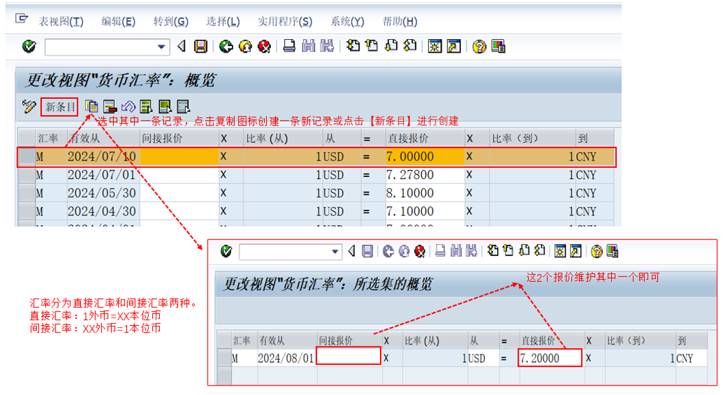 - 反向: OB08配置时缺少将一种货币转换为另外一种或的汇率条目,则可以使用反转汇率关系。