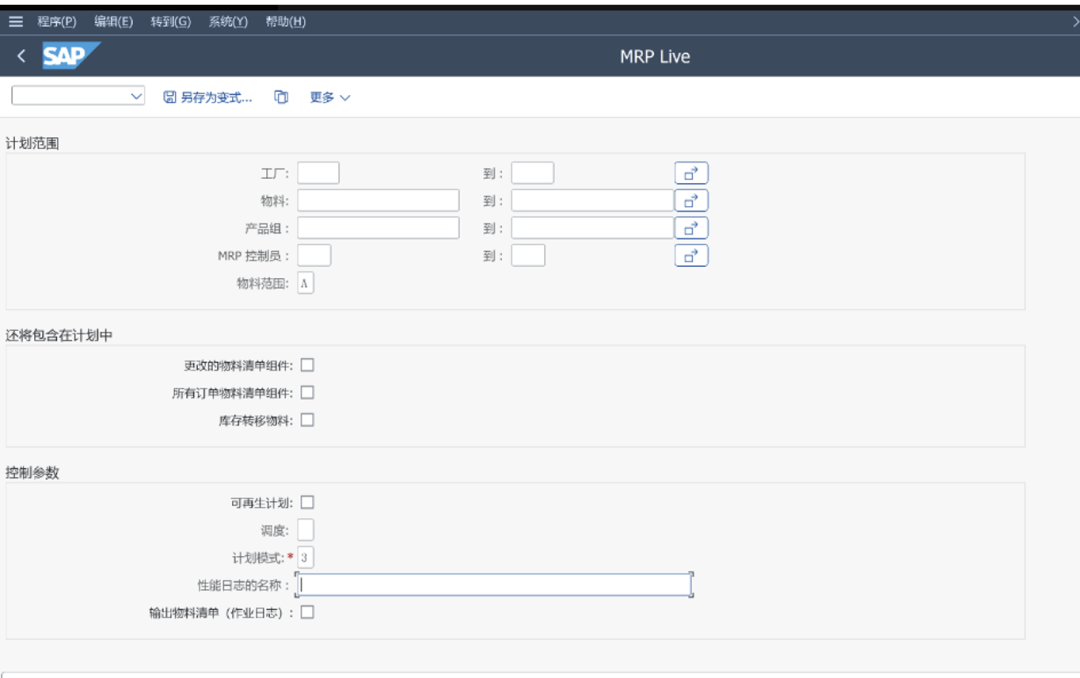 • MRP Live:对于大规模、高复杂度的计划场景,使用MRP Live以提升性能。在S/4HANA中使用MD01N,可以更灵活地选择MRP控制员、物料、产品组等,实时运行MRP,快速响应客户需求。