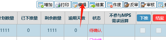 点中状态为待确认的一条单号后,点击编辑