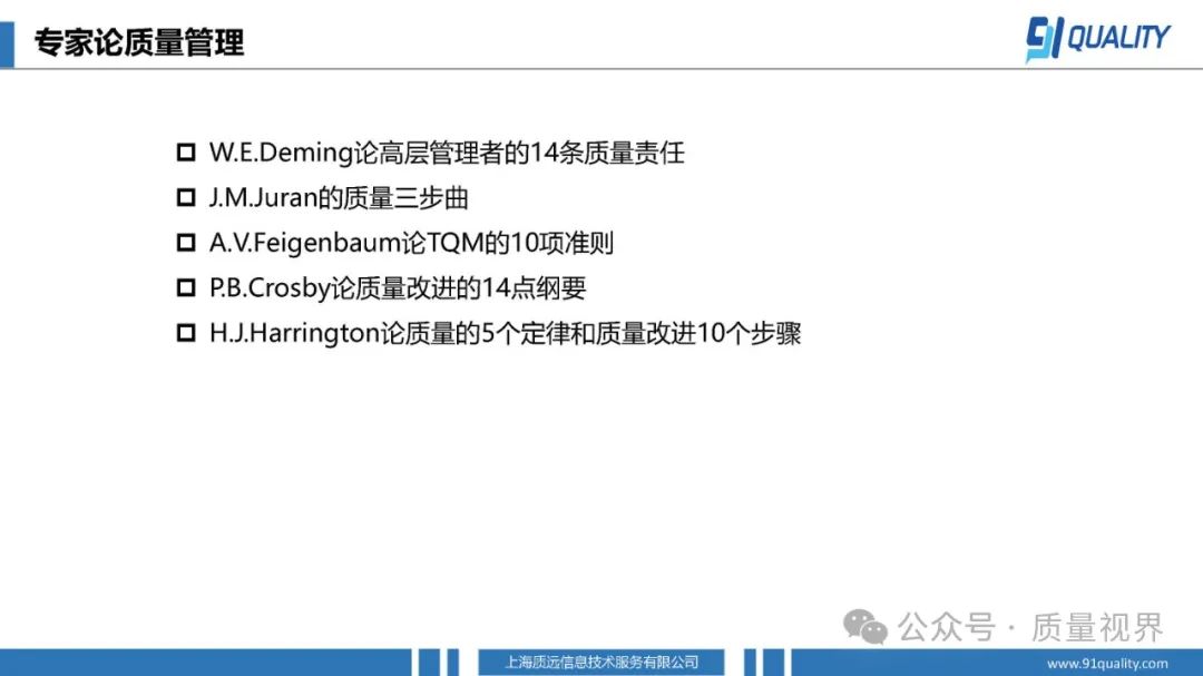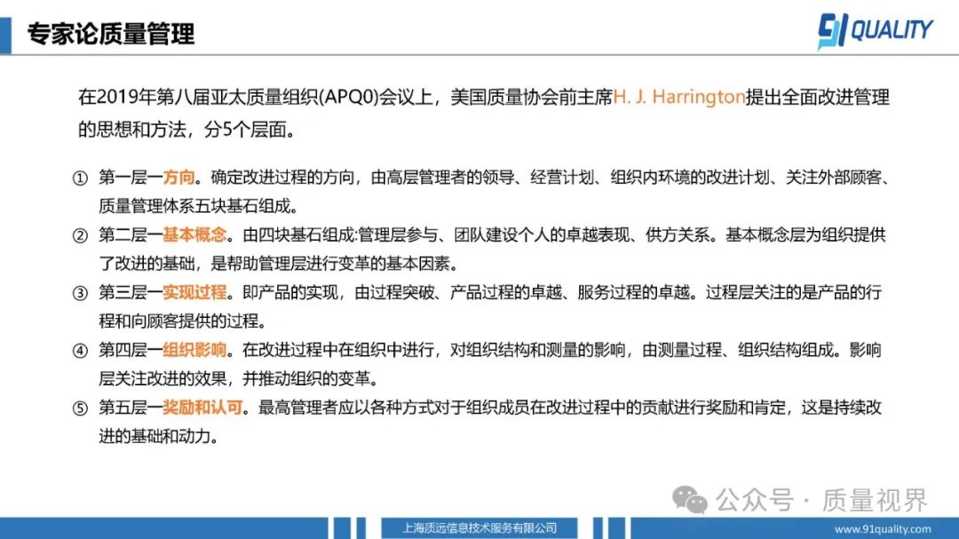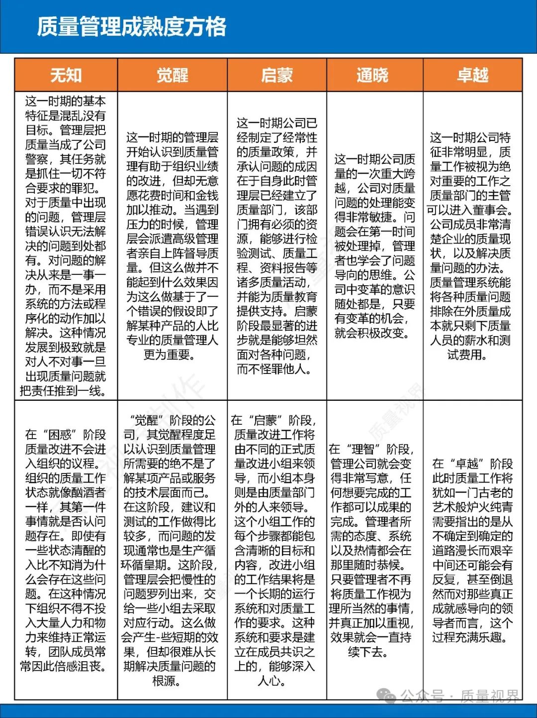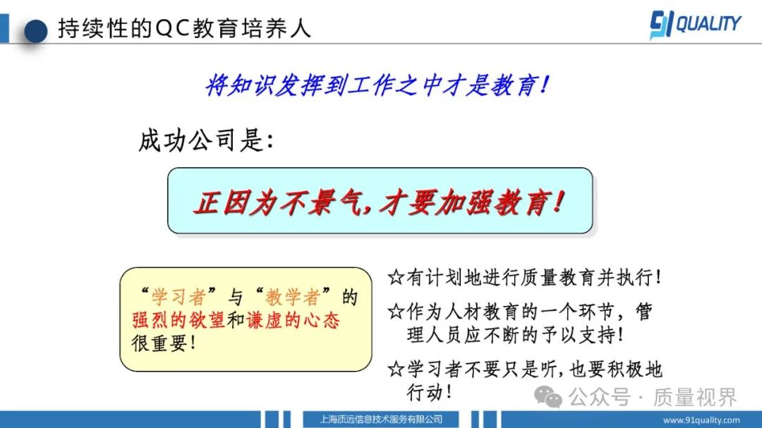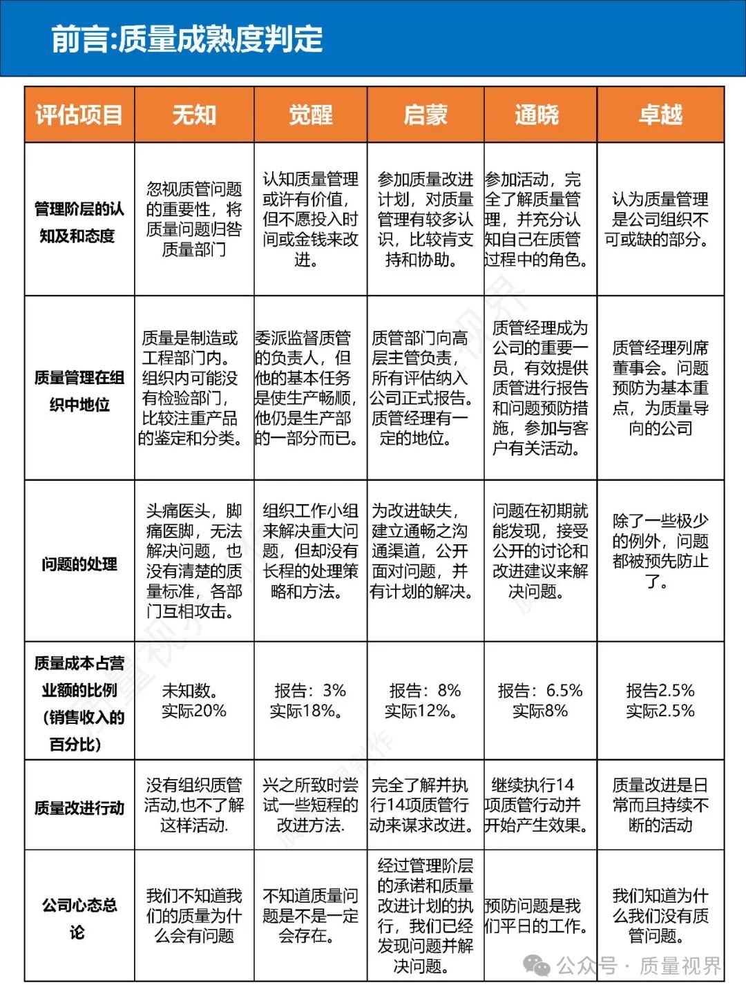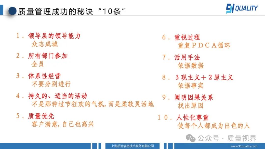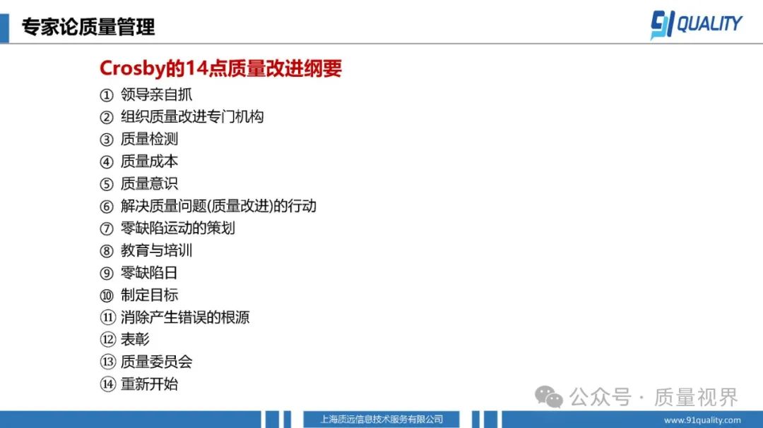 14. 质量管理文化:长期教育和普及质量管理方法。