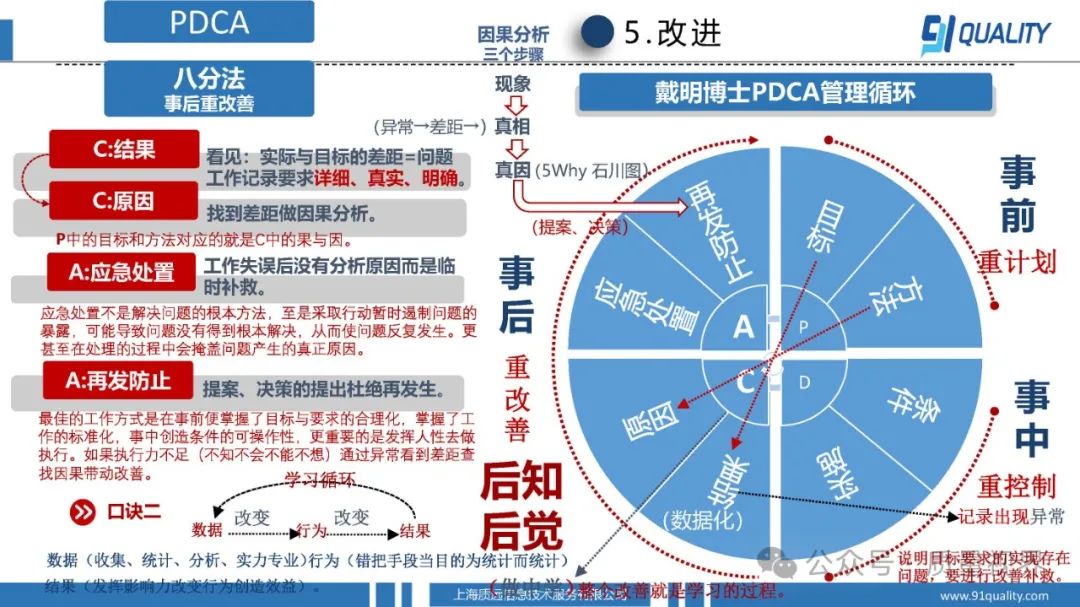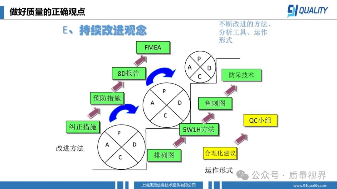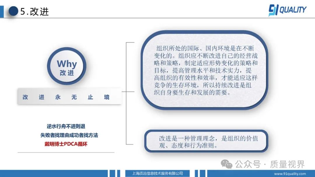 9. 质量改进原理:发现问题、解决问题、预防问题。