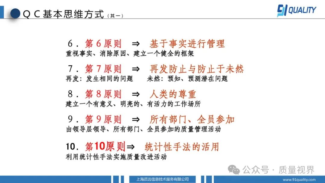 6. 质量控制原理:定义质量并确保标准被有效执行。