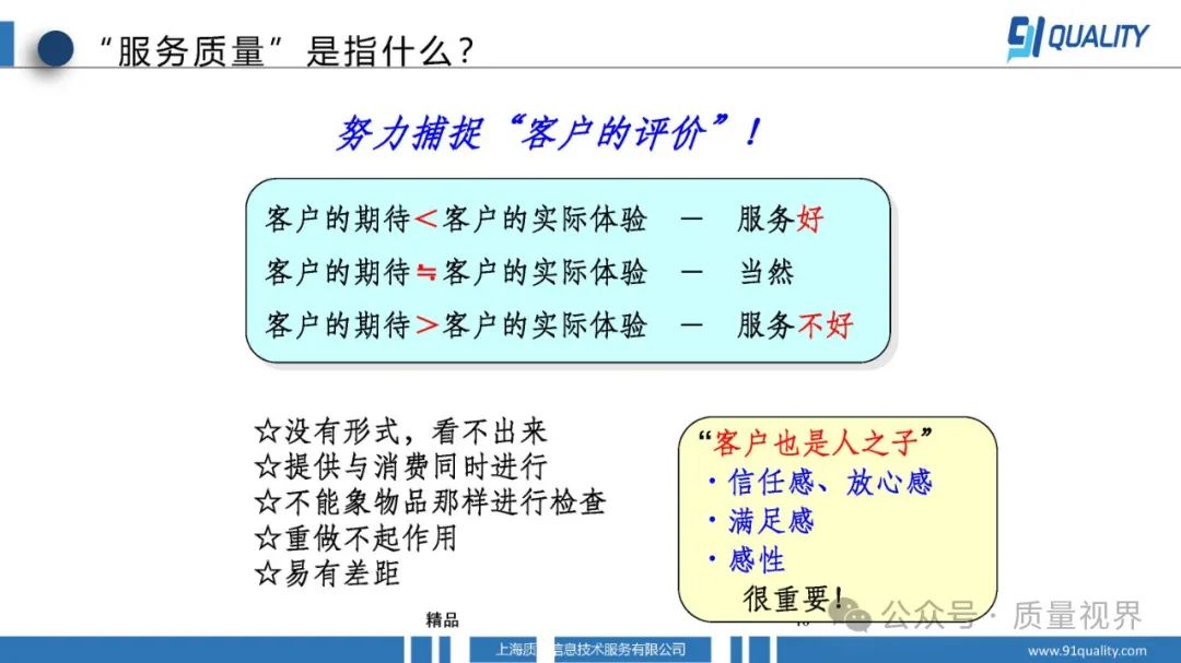 2. 满意质量:超越基本标准,提供满意的产品和服务。