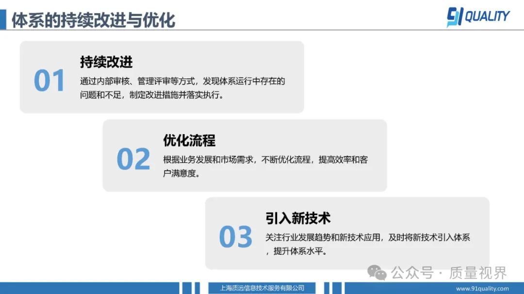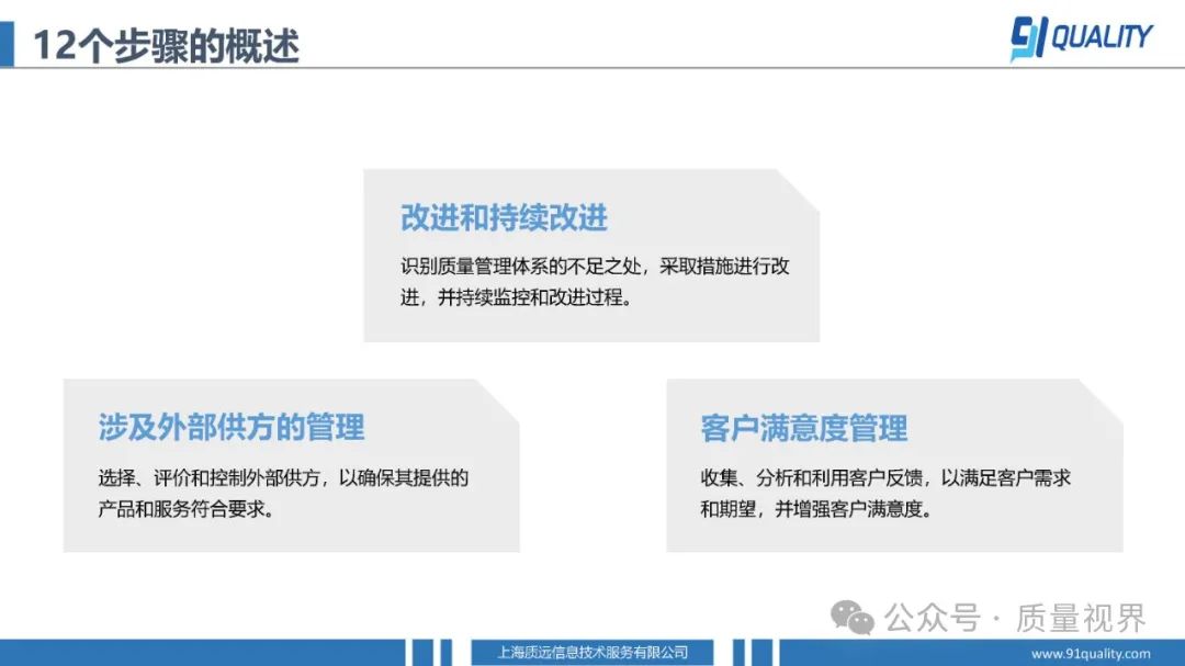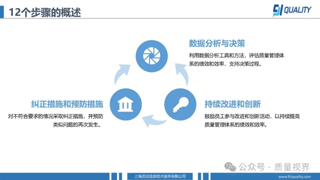 12. 质量体系原理:建立及维持质量秩序并持续改进。