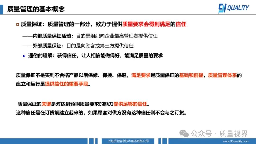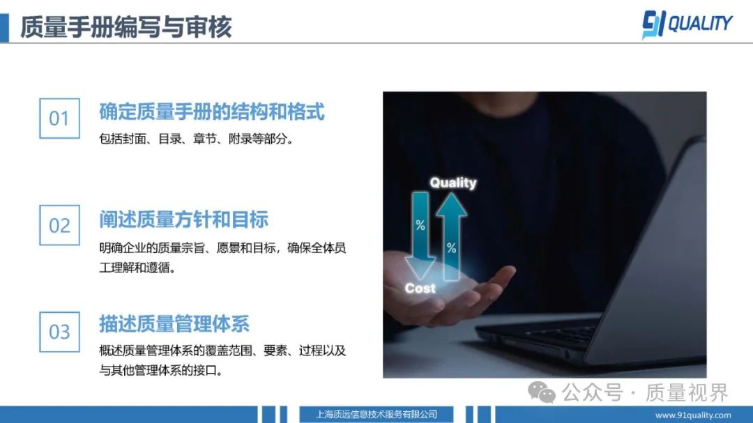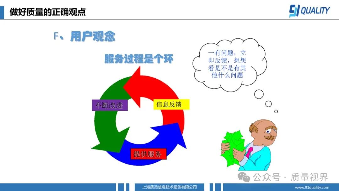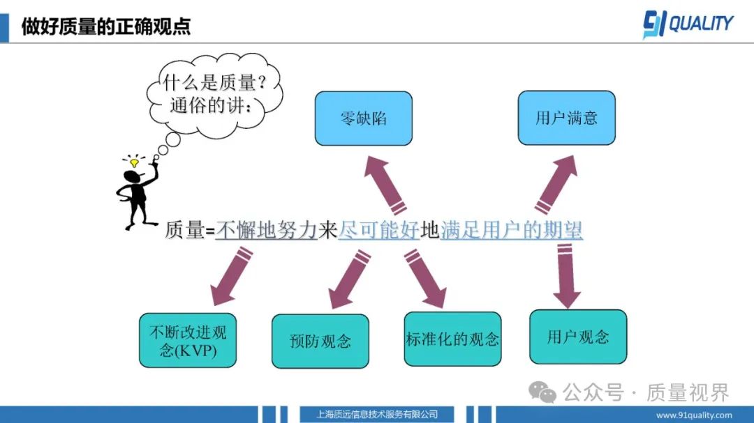 3. 质量部门价值:质量管理是企业管理的一部分,目的是持续赢利。