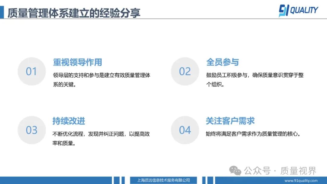 4. 领先质量:在行业中树立质量标杆,引领质量标准。