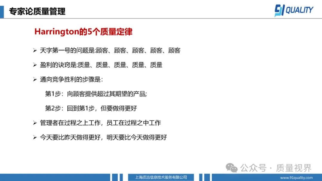 15. 质量管理终极:全面规范流程,提升人的素质,降低经营成本。