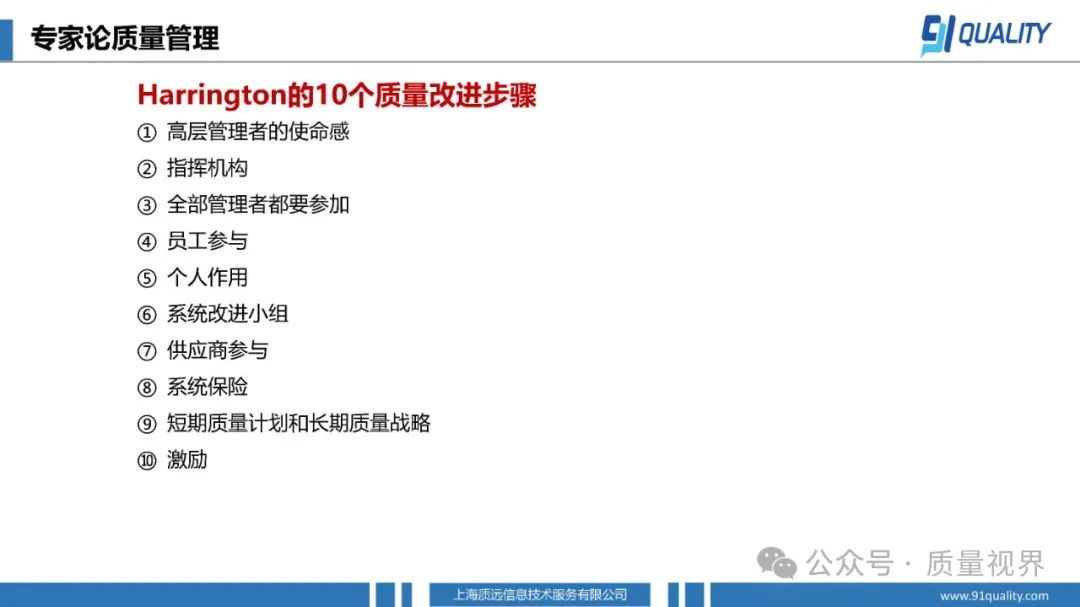 10. 质量改进本质:重新定义质量并持续实行质量控制。