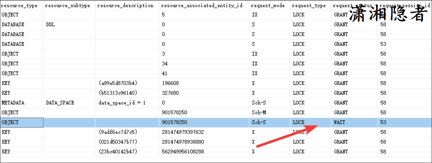注意:查询条件中用实际具体的OBJECTID2的值替换。 从锁的兼容性来分析的话,这时发生阻塞与被阻塞的可能性是存在的,统计信息更新期间,在申请共享锁时,某些操作在元数据对象上持有意向排他共享锁(SIX)、意向排它锁(IX)、排它锁(X),例如并发的会话跟新统计数据等操作,实际场景中,统计信息更新很少在发生申请共享锁时阻塞其它会话与被其它会话阻塞。 2. 架构稳定性锁(Sch-S)当UPDATE STATISTICS时,SQL Server 会获取架构稳定锁(Sch-S)。这里不仅仅是统计信息更新涉及的相关对象还包括统计信息元数据对象,都会获取Sch-S锁,而对于架构稳定锁(Sch-S)有下面一些规则: