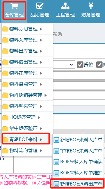 :点晴ERP-新增BOE退料出库单