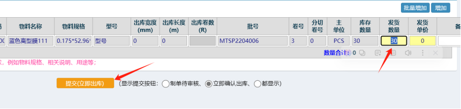 确定数量后,点击提交出库按钮即可