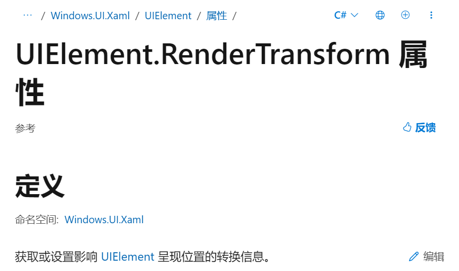 属性用于获取或设置影响 UIElement 呈现位置的转换信息。