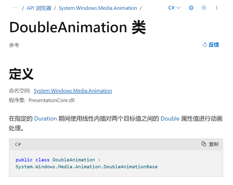 DoubleAnimation 是 WPF 中的一个类,它用于创建从一个 double 值到另一个 double 值的动画。这个类是 AnimationTimeline 类的派生类,它可以用于任何接受 double 类型的依赖属性。