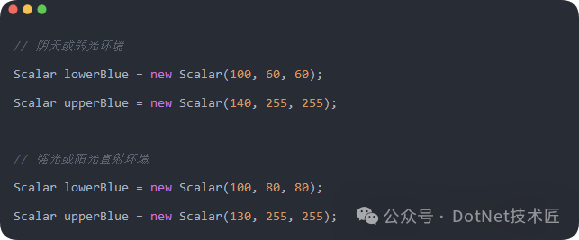 Scalar lowerBlue = new Scalar(1007070);  // 使用更具体的下边界