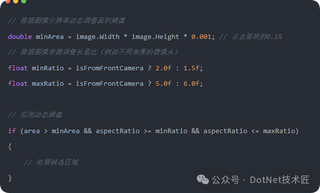 不同场景下的车牌特征可能有所不同,可以设计自适应参数调整机制: