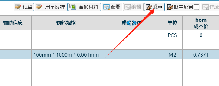![]() ![]() 点击进入 如下图: ![]() 找到已审核的BOM信息,点中后再点击反审按钮 如下图: ![]() 然后在新窗口填上反审原因,再点击反审按钮 ![]() 反审完后关闭此窗口。
