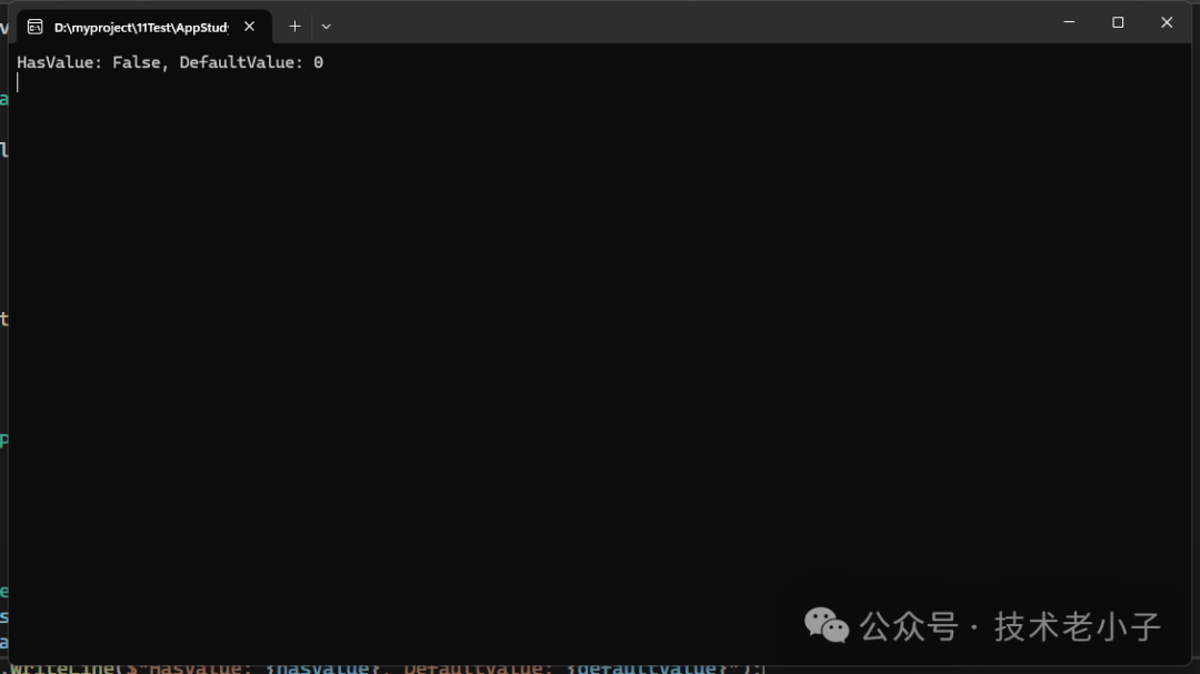 Console.WriteLine($"HasValue: {hasValue}, DefaultValue: {defaultValue}");