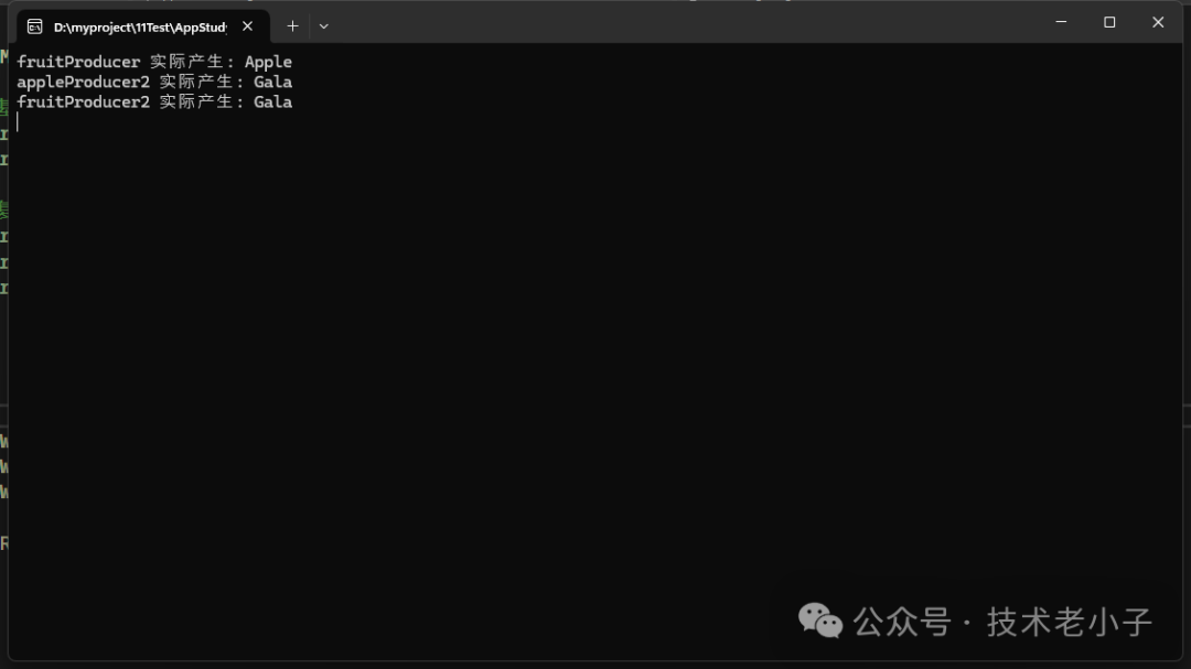 Console.WriteLine($"appleProducer2 实际产生: {f2.GetType().Name}");